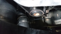 オルターネーターのプーリーに干渉して穴が開いたみたいです。