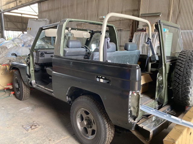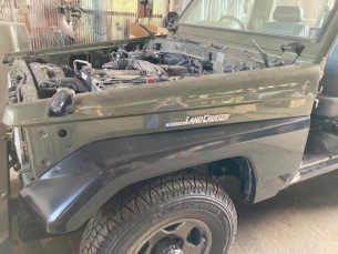 こんにちは三橋です。 お得意様のランクル。 長期で板金屋さんに入っております。 外装ひと廻り修理です。 ほぼ全塗装です。