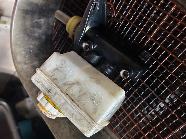 お得意様のディフェンダー110です。 ブレーキマスターシリンダー、バキュームポンプを交換です。 バキュームポンプはオイル漏れがあります。