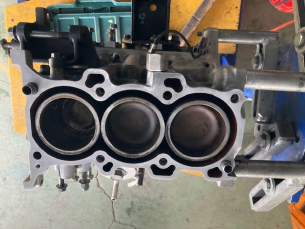 こんにちは三橋です。 スズキジムニー エンジンのオーバーホールで入庫です。 シリンダーブロックもシリンダ-ヘッドも軽いですね~