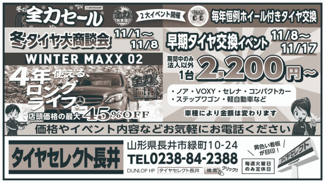 いつも当店をご利用いただきまして 誠にありがとうございます! 11月8日~11月17日までの期間 タイヤ交換イベントを行います! 近年物価高により、いろいろな 物や価格が上がっております! 当店でもそのあおり...