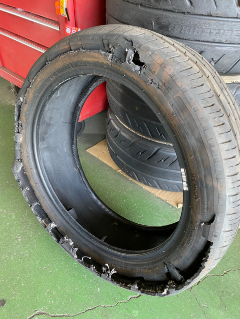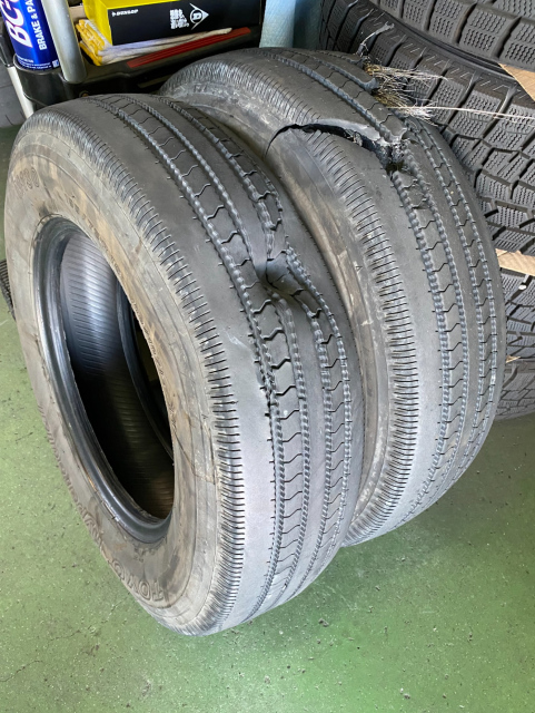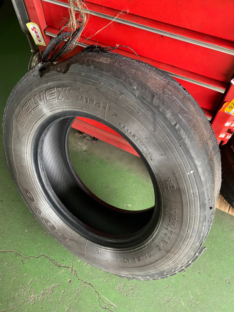 1日に2本バースト 仕事先へ行きがけに高速道路で1本バースト、帰りにまた1本バーストしてしまったそうです 高温と劣化が原因だと思われます 2020製 国産