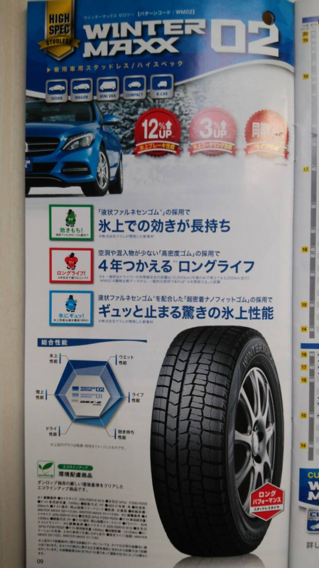 [NO.1スタッドレスタイヤ!!]と性能評価が国産スタッドレスタイヤの中でも総合性能高レベルの一押し製品と歌ってありました!