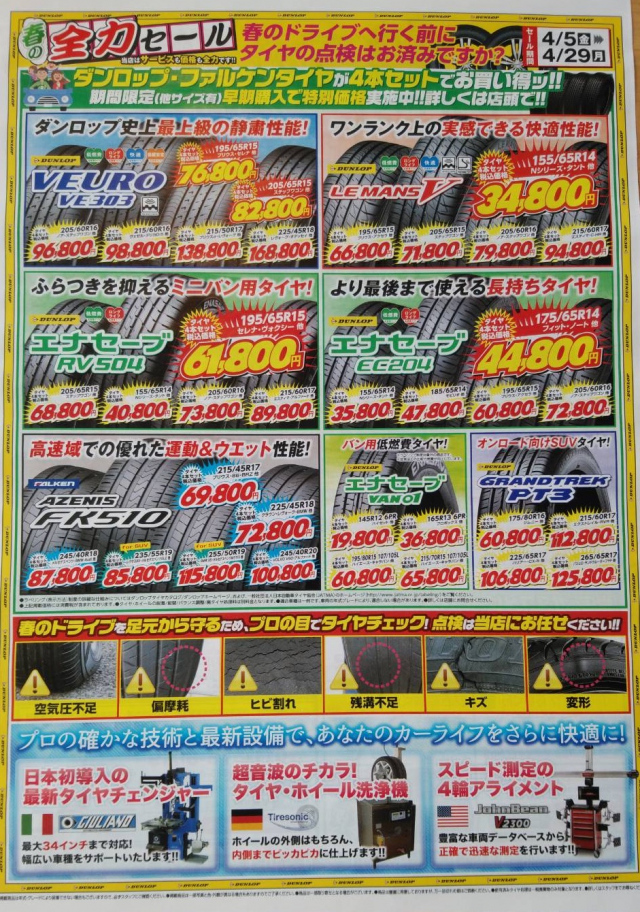 4/5より[タイヤセレクトカーズ札幌山の手カフェ春の全力セール開催中♪]