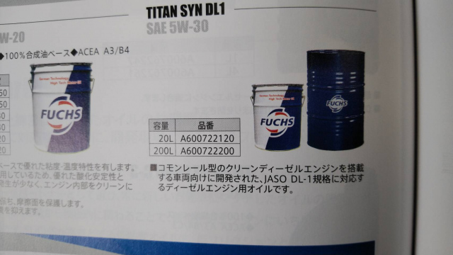 今回は弊社オススメ!高級オイル[FUCHS社製TITAN SYN 5W30]をチョイスさせて頂きました♪