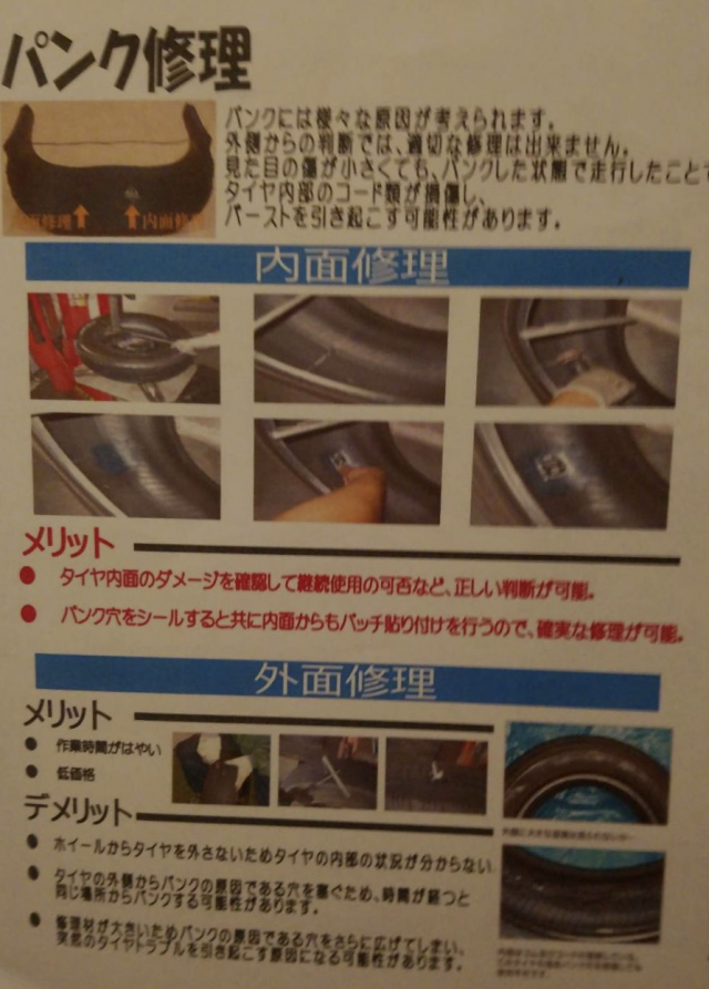 たかがパンク修理と思いますが、しっかりエア漏れを防ぎ、タイヤ本来の機能性能も落とさず長持ちロングライフのパンク修理は是非とも、弊社のパンク「内部修理」をご利用下さい♪