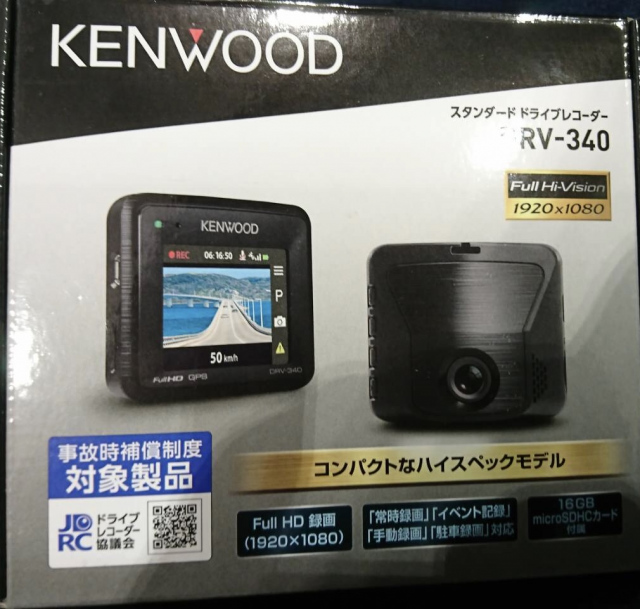 ドライブレコーダーは当店お薦シングルカメラタイプの高性能機種 KENWOOD DRV MR340をチョイスして頂きました♪