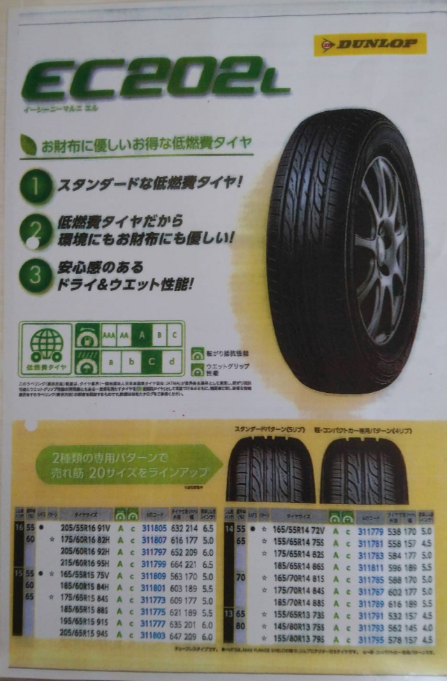 当店お薦め!経済性抜群の低燃費タイヤEC202L 185/65-15をチョイスさせて頂きました♪