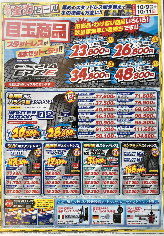 旧商品・訳アリ商品の超特価限定冬タイヤもズラリ!早い者勝ちですよ!!