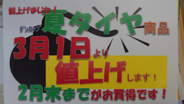 お知らせ 夏タイヤ 2022年3月1日より値上げ