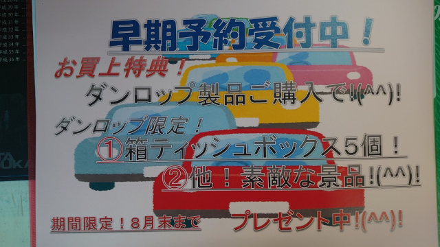 只今、お買上げで(^^) ダンロップBOXティッシュ5箱・他素敵な景品プレゼント中!