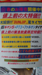 4月~ダンロップ・ファルケン製品のタイヤ値上げになります。