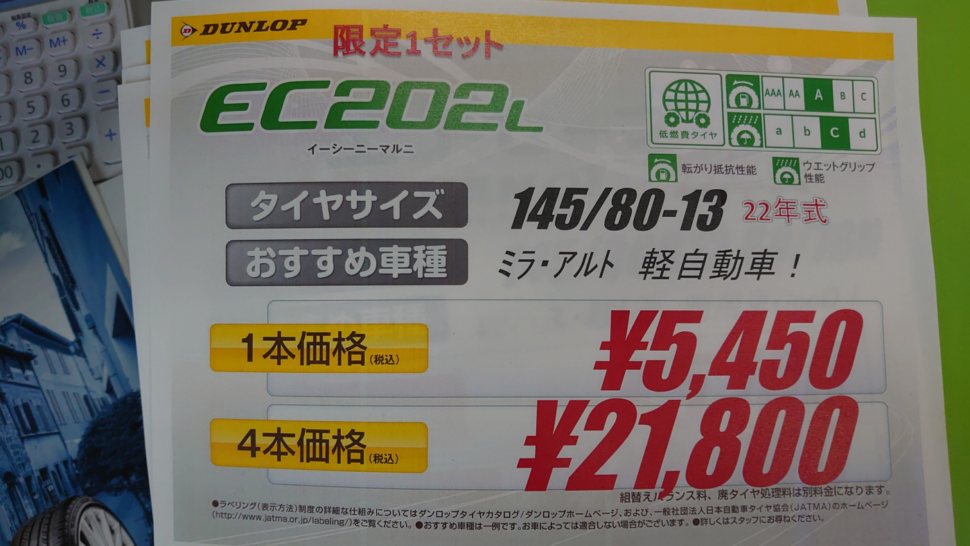 夏タイヤ!在庫品セールしております。新品タイヤで燃費上昇!