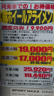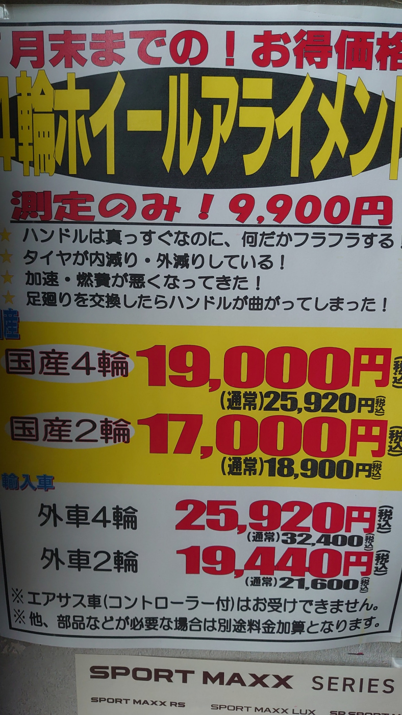 (4輪ホイールアライメントは予約です。店頭スタッフまで)