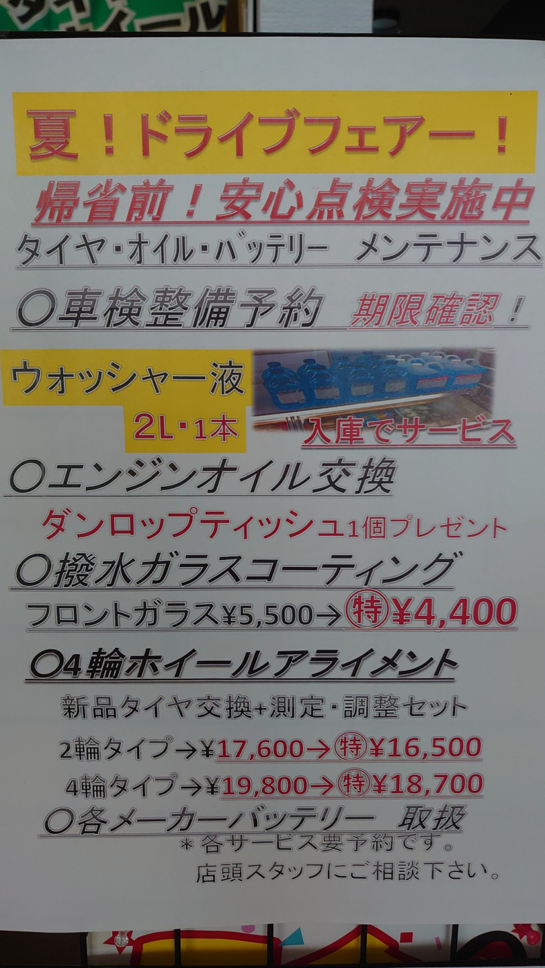 お車の事!(^^)! タイヤの事!(^^)! 何でもご相談下さい。