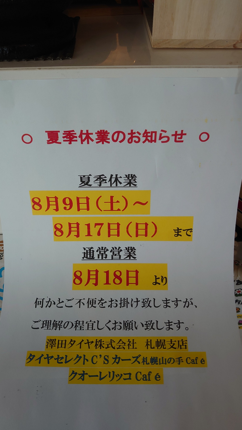 何時もご利用有難うございます。 夏季休業のお知らせです。
