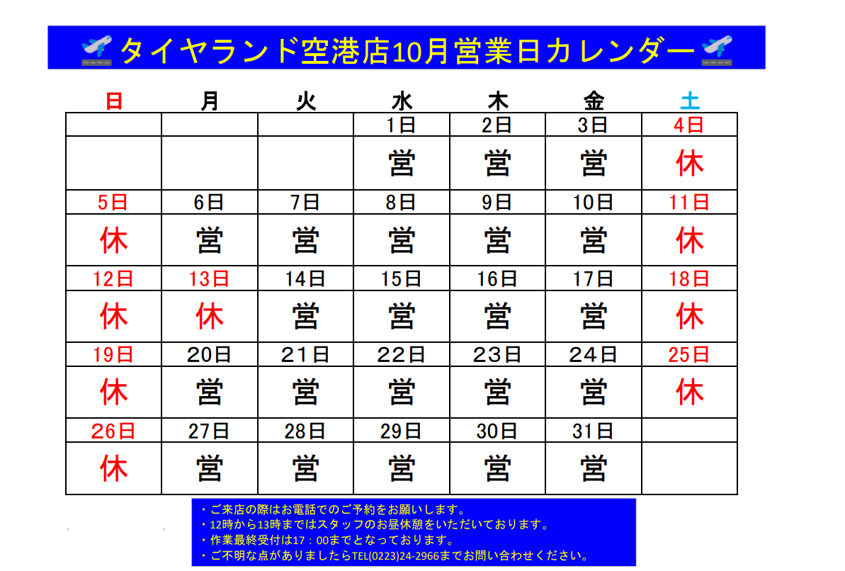 来月の営業日カレンダーが完成しましたので掲載させていただきます!