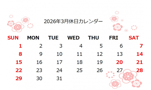 | 日 | 月 | 火 | 水 | 木 | 金 | 土 |