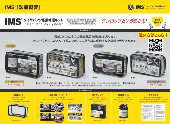 IMSとは・・・タイヤパンク応急修理キットの事言い、空気充填も出来ます!!