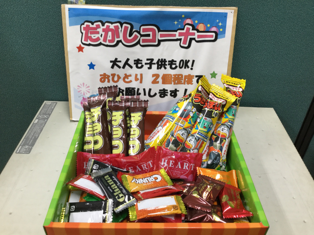 店内休憩所のお菓子もチョコ多めに設置しております!
