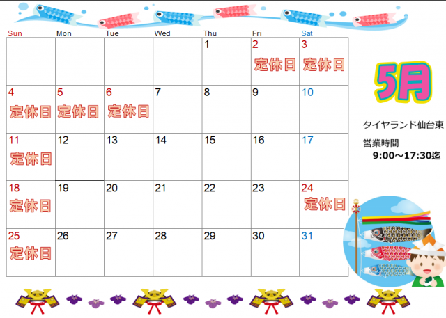 その他の土曜日は営業日となりますので、タイヤ交換や点検等