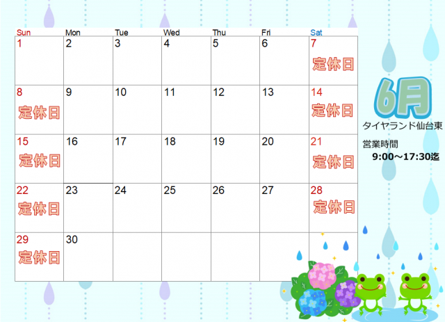 6月は土日全てお休みとなります。