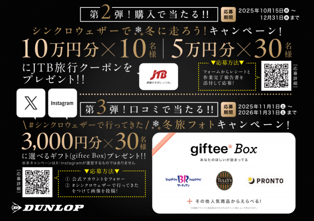 ダンロップタイヤ公式SNSアカウント(X・Instagram)をフォローいただき、