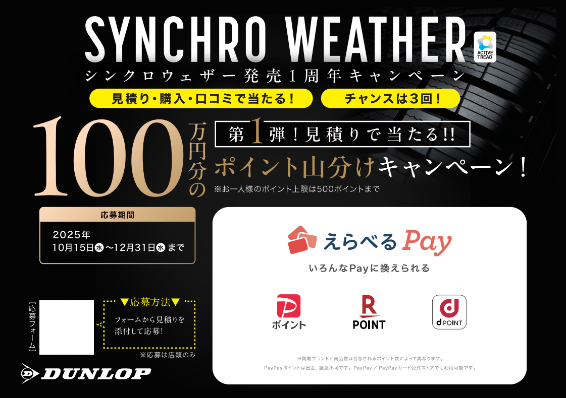 ダンロップタイヤの次世代オールシーズンタイヤ「SYNCHRO WEATHER」は、2025年10月に発売1周年を迎えます。