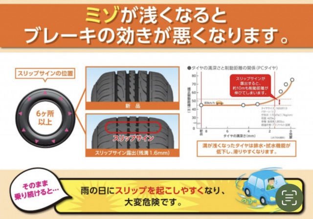 タイヤ交換後、タイヤの残溝・ひび割れはどうでしょうか???