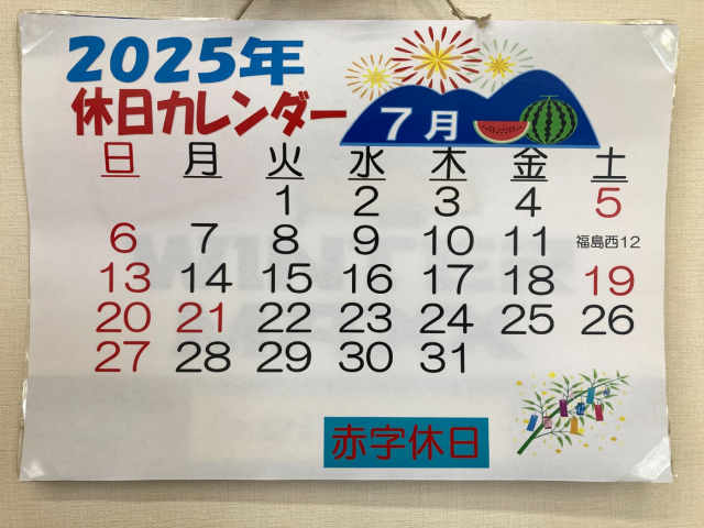 こんにちは。タイヤランド福島です。 いつもホームページをご覧いただきありがとうございます。 2025年も半年が終了しました。 7月の営業日のお知らせをします。 今月の土曜営業日は26日です。 暑い日が続いています...