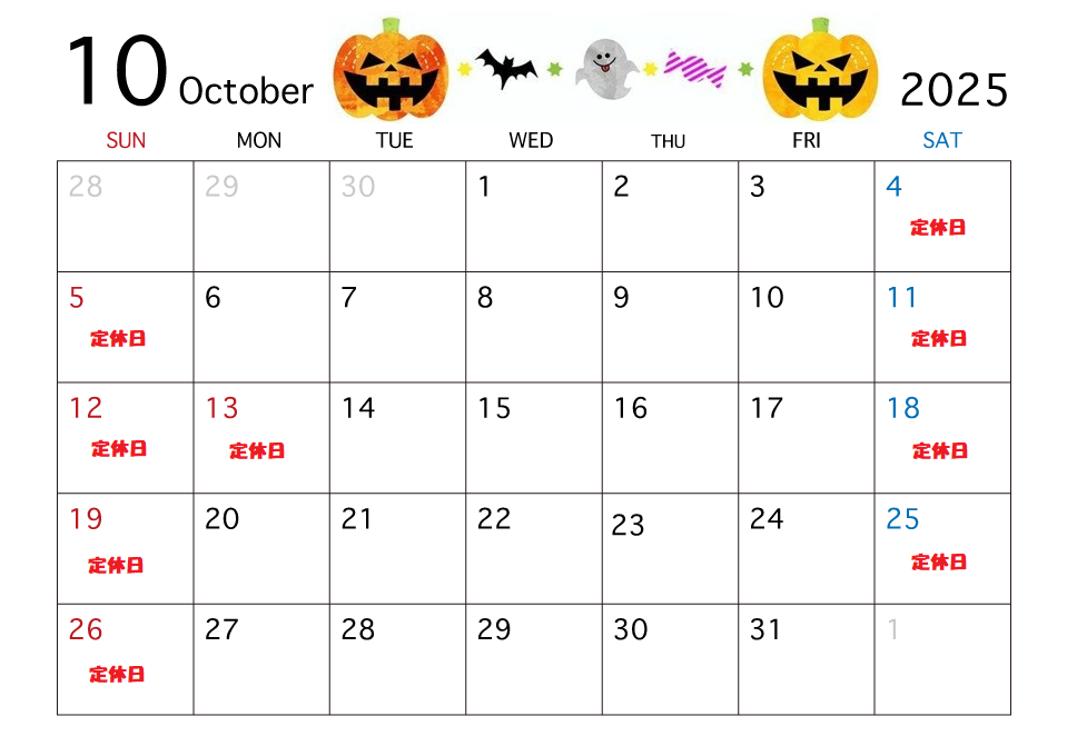 10月の定休日のお知らせです! スタッドレスタイヤの準備はおはやめに(*'▽')