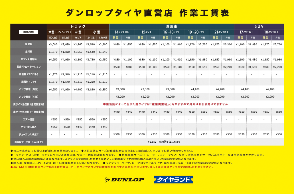 ☆ 作業工賃のお知らせ ☆