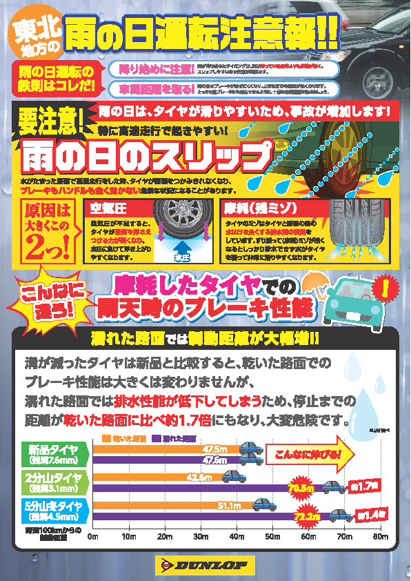 スリップしやすくなったり、車が止まるまでの距離が伸びたりと