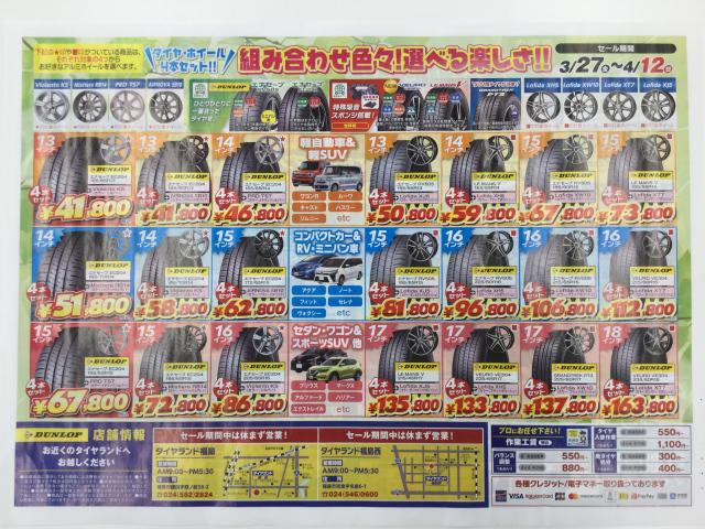 タイヤをお探しの方は、今がチャンスですよー(^O^)