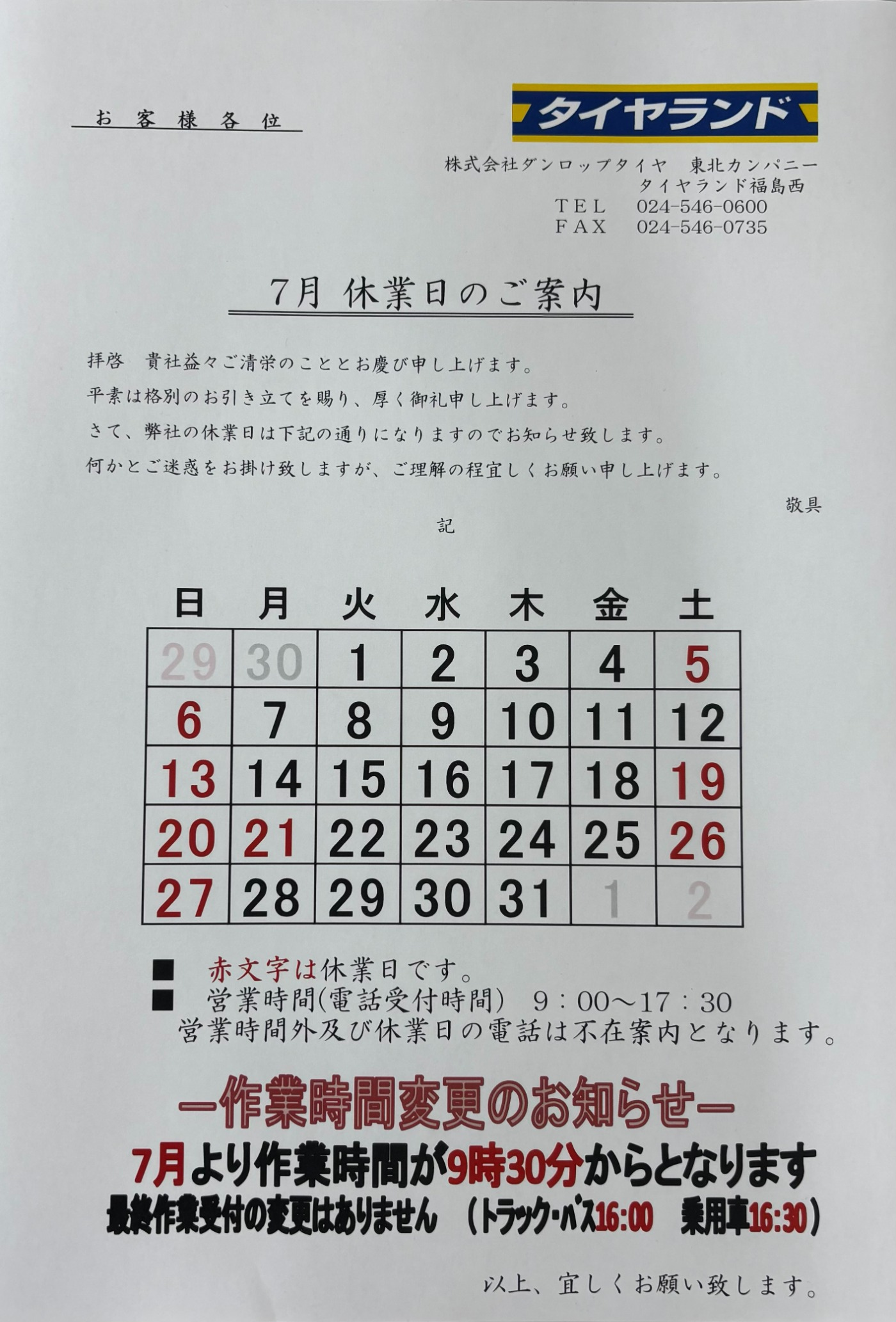7月の営業日ですが、平日と12日(土曜日)のみとなっています!