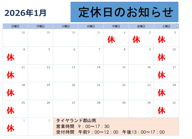 タイヤランド郡山南 新着情報