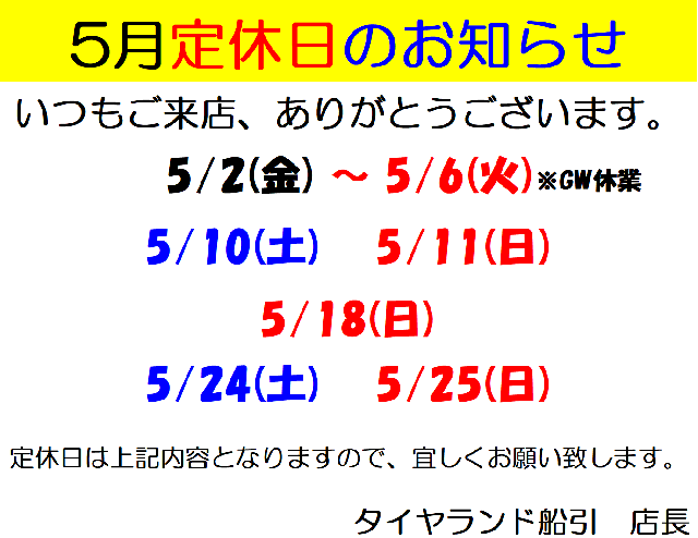 最近は暖かい日が続き、春を迎えつつありますね。 私は花粉症や黄砂で鼻が機能を失っています(笑) 4月からはタイヤ交換作業による混雑が見込まれますので、作業予約はお早めに! ご来店お待ちしております。 ⇩4月定休...