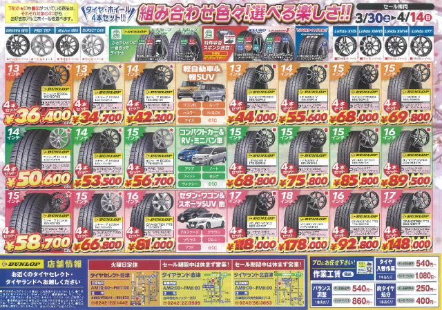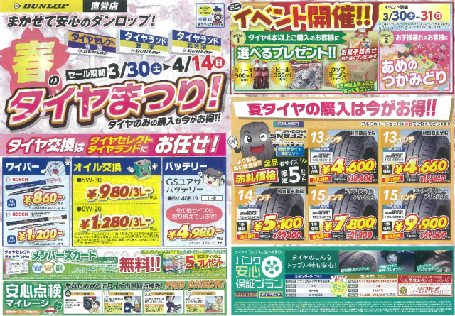 タイヤランド北会津では春のタイヤ祭りを開催中です!!