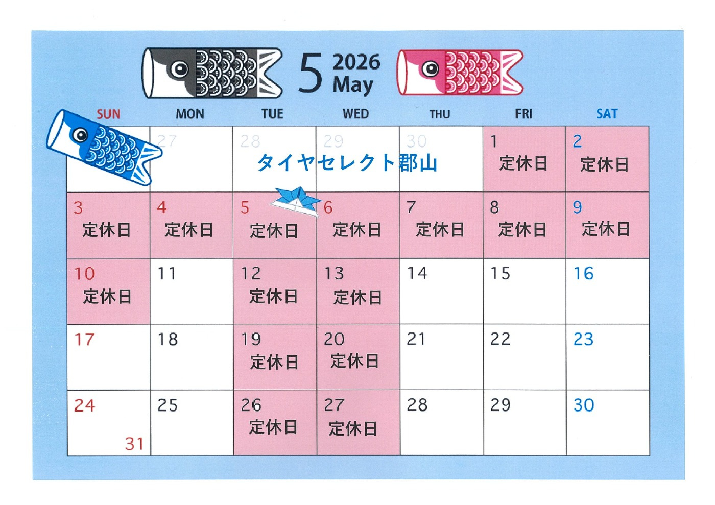 5月定休日のお知らせ