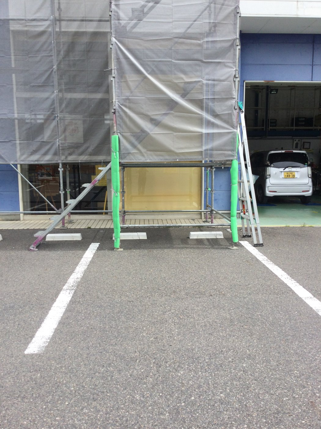 一部の駐車場に足場が設置されていますので、ご来店の際はお気をつけください。