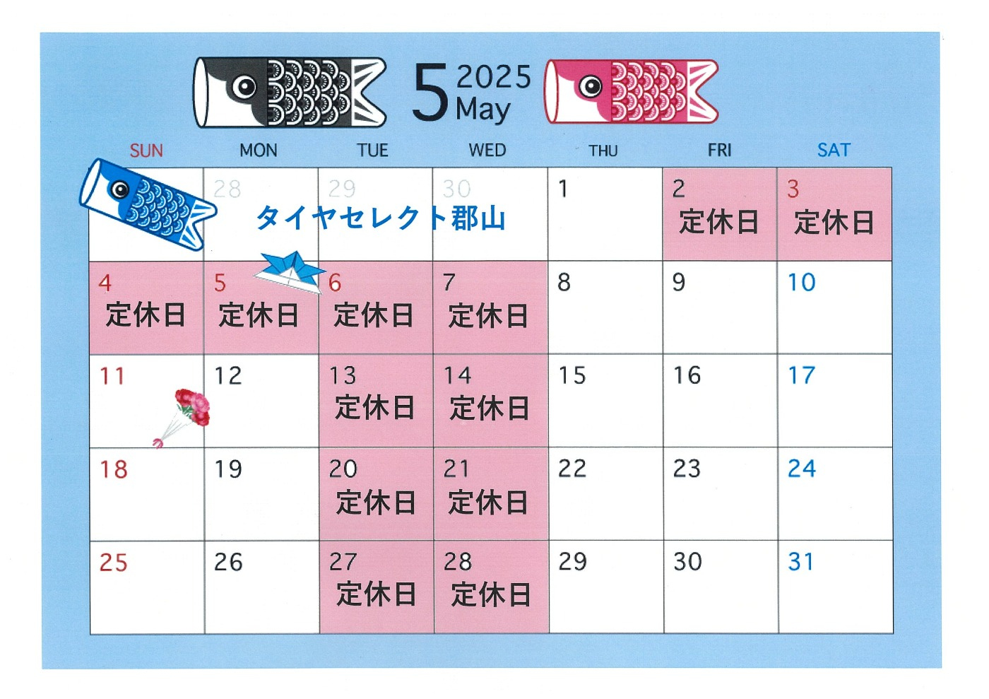 5月定休日のお知らせです