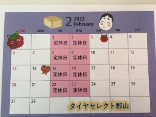 みなさん、こんにちは(^^♪ まだまだ寒いですが、暖かい日もたまにあり春がどんどん近づいているな~と 最近感じてきました。花見をはやくしたいですね(*'ω'*) 3月定休日のお知らせです。 タイヤ交換が徐々に始まって...