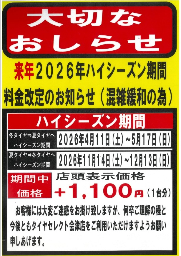 タイヤ交換の予約が混雑してきております...!