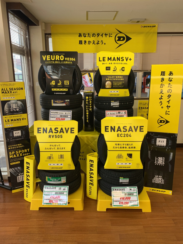 雪解けも始まりましたし、当店では夏タイヤ展示してみました!