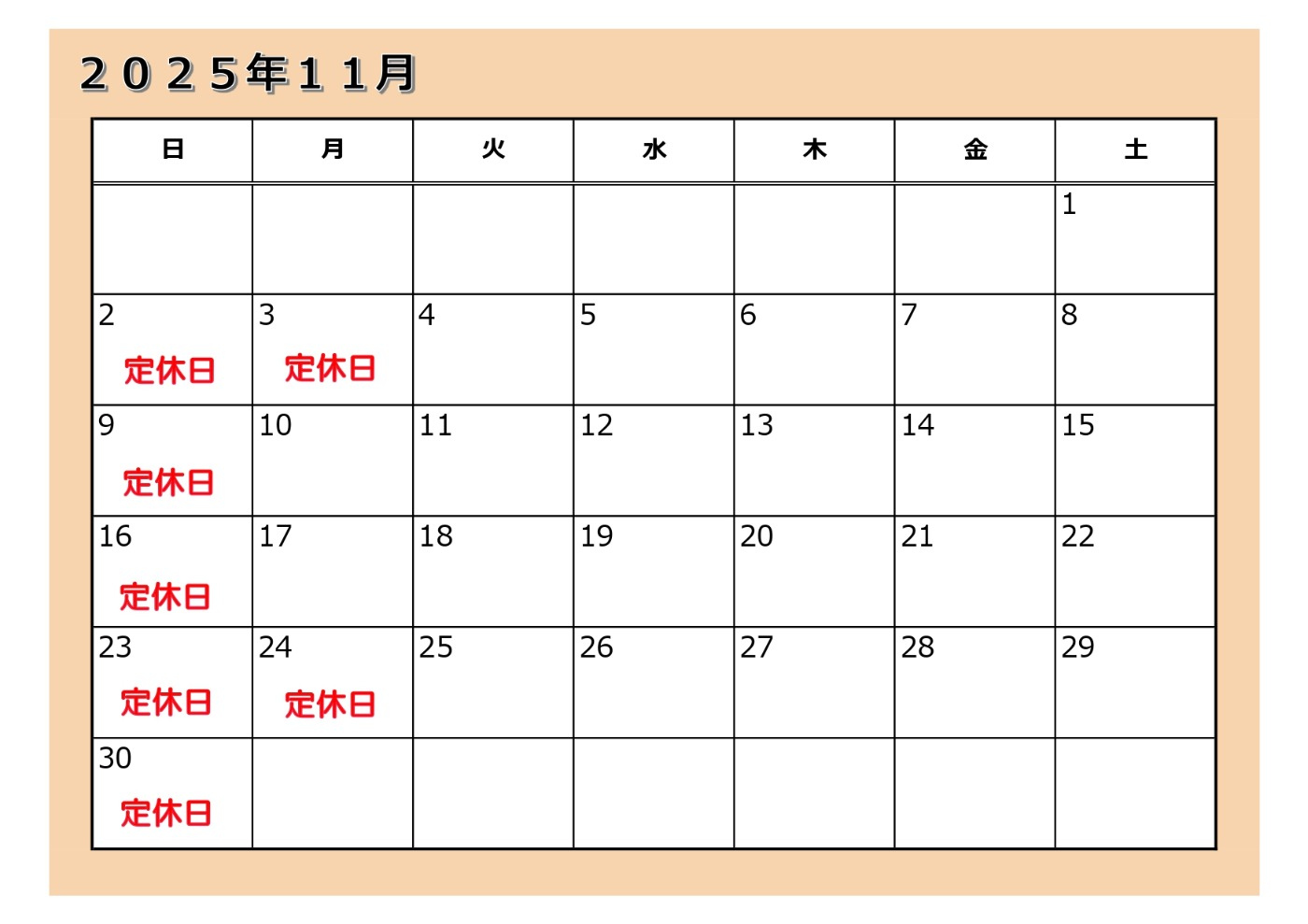 【11月定休日のご案内】