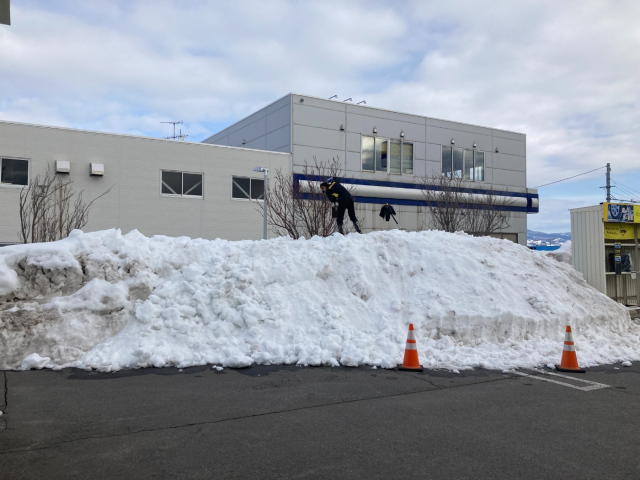 また、駐車場内の盛り上げた雪も崩れる恐れがあるので、今日も隊長の佐々木スタッフが