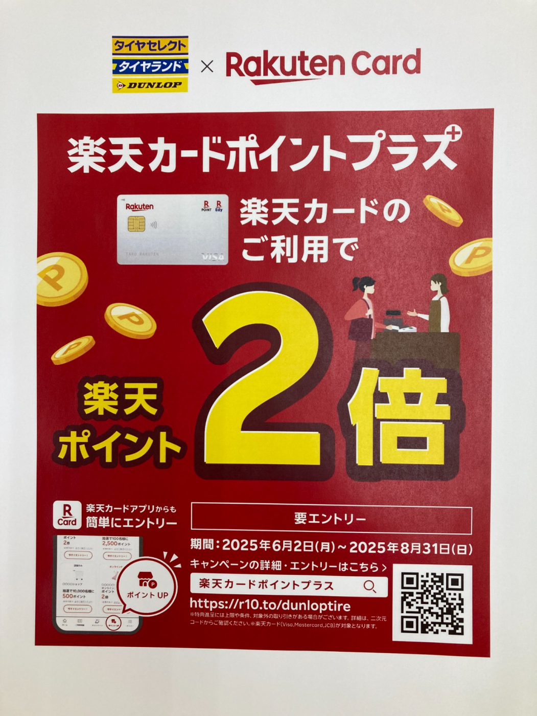 また、8月末まで楽天カードとダンロップタイヤ直営店企画