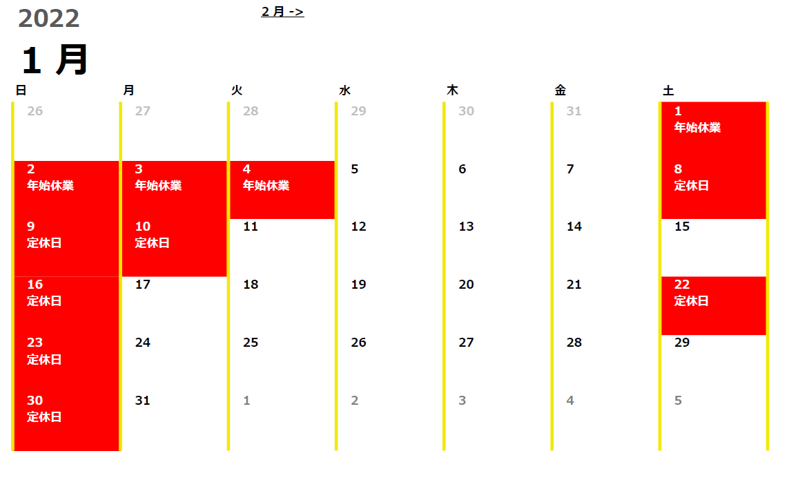 【◇謹賀新年◇】1月の営業日のお知らせ