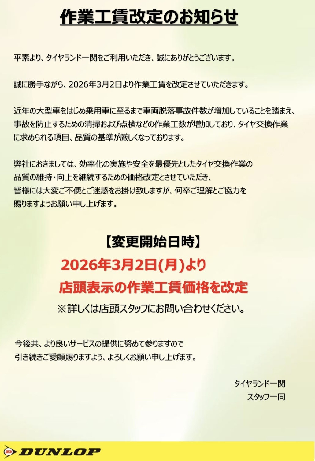 当店では、3月2日(月)より、作業工賃の改定をさせて頂く事となりましたので