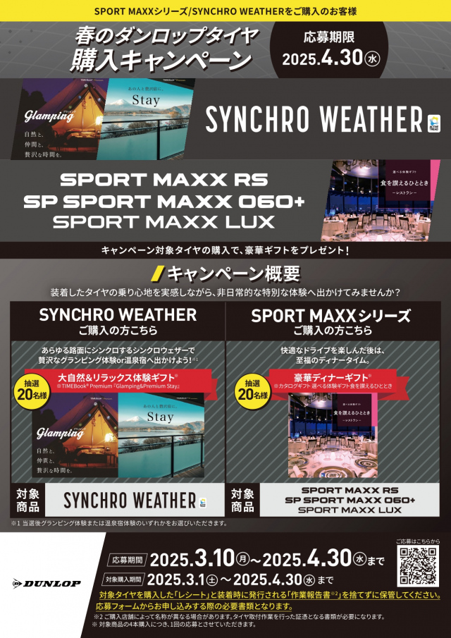 いつもタイヤランド大館をご利用いただきありがとうございます! 3月10日から実施しているキャンペーンのお知らせです! 対象タイヤ購入のお客様に抽選で豪華景品をプレゼントいたします! 大谷選手でおなじみのSYNCHR...